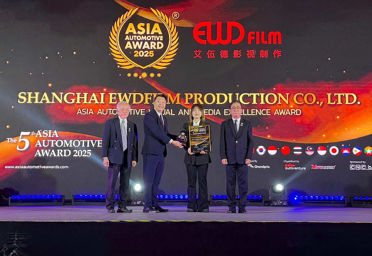 鲁网1月29日讯第五届亚洲汽车大奖(The 5th Asia Automotive Award 2025)颁奖典礼于 1 月 17 日晚在泰国曼谷举行。上海艾伍德影视制作有限公司(以下简称“艾伍德影视”)荣获“亚洲汽车视觉与媒体卓越奖(Asia Automotive Visual and Media Excellence Award)”。