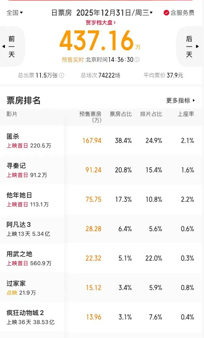 到了31号,基本上就是国产电影的天下了,两部好莱坞电影吐了排片,国产滴啊与基本上都有差不多10%到25%的场次了。
